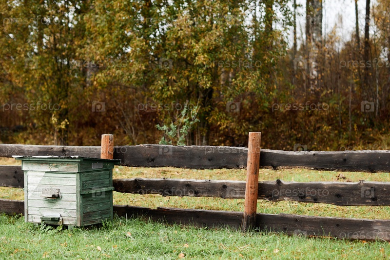 Улей возле забора рядом с Осенним лесом на Апиарной ферме