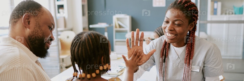 Доктор празднует веху ребенка с жестом высокой пятерки