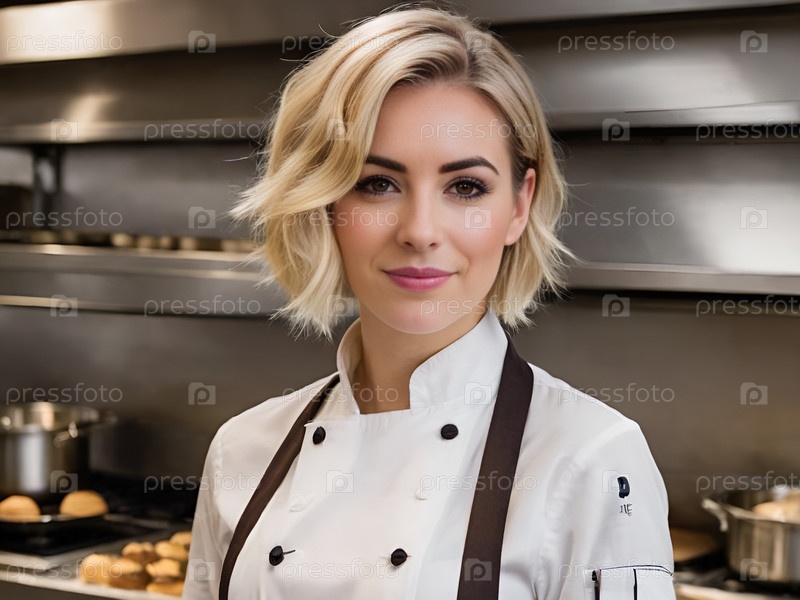 Портрет женщины-повара в профессиональной кухонной обстановке