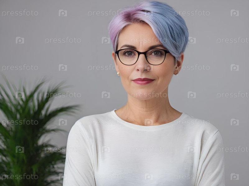 Портрет пожилой женщины с очками и улыбкой