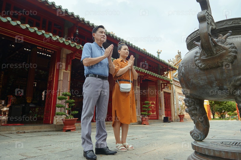 Молодая пара молится вместе на свежем воздухе