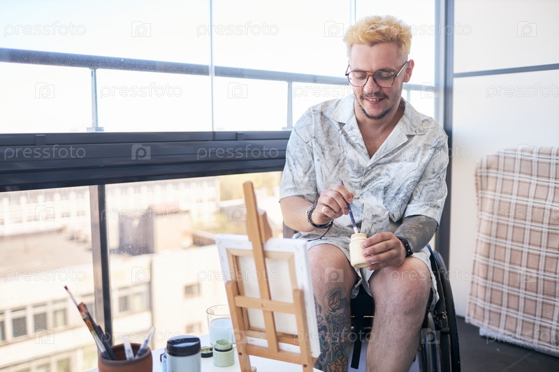 Создание искусства в инвалидном кресле в современной городской обстановке