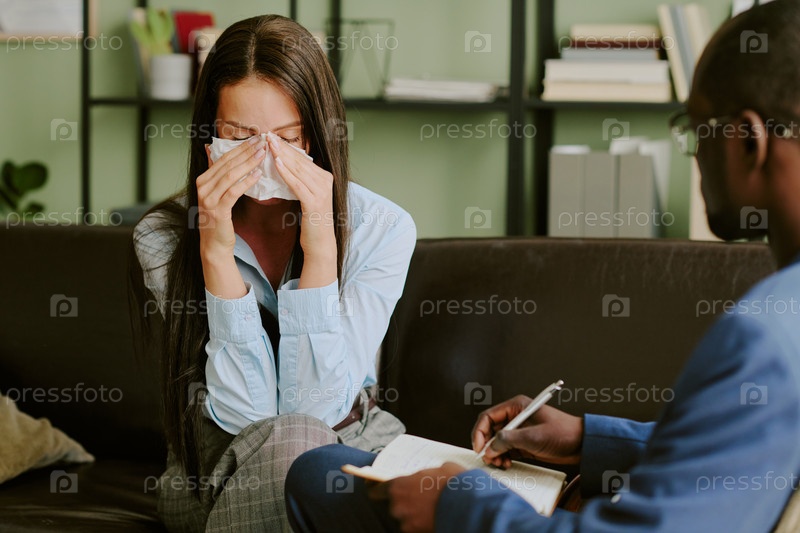 Утешение женщины, которая плачет во время сеанса терапии