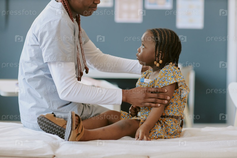 Врач, выполняющий медицинский осмотр здоровья ребенка в клинике