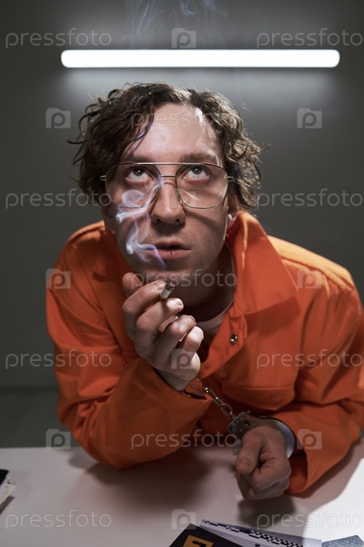 Человек в оранжевом костюме курит с интенсивностью мышления