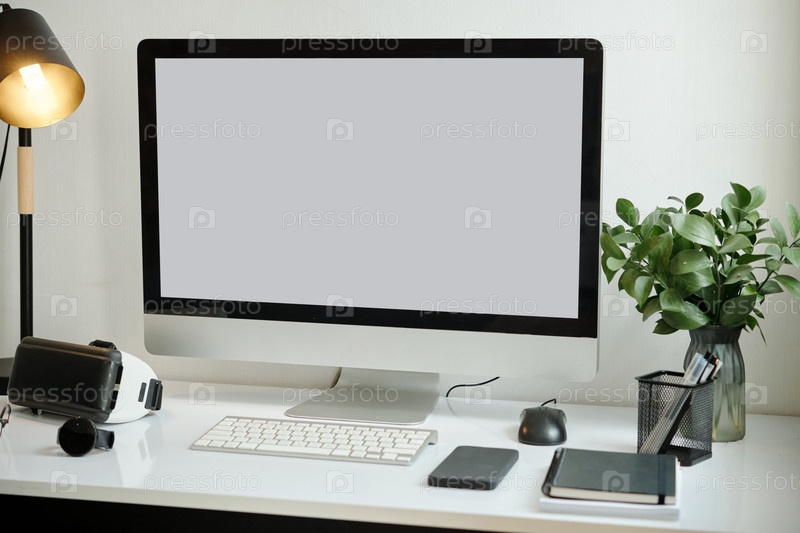 Рабочее место с настольным ПК для онлайн-работы