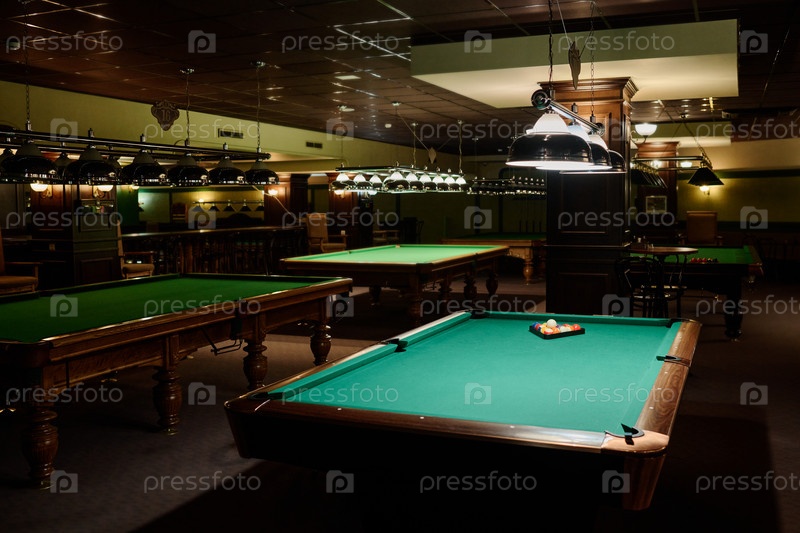 Стильные лампы освещают бильярдные столы