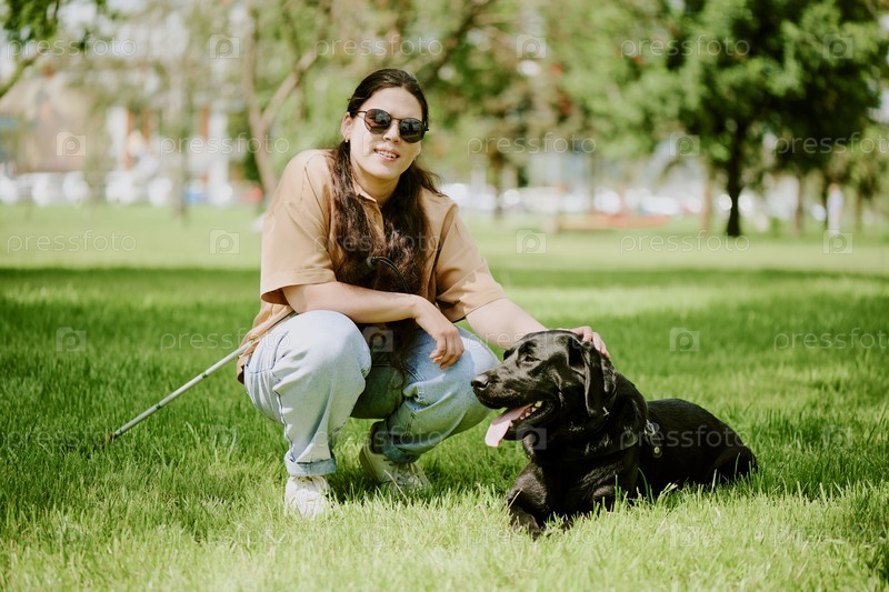 Женщина и собака позируют для фотографии