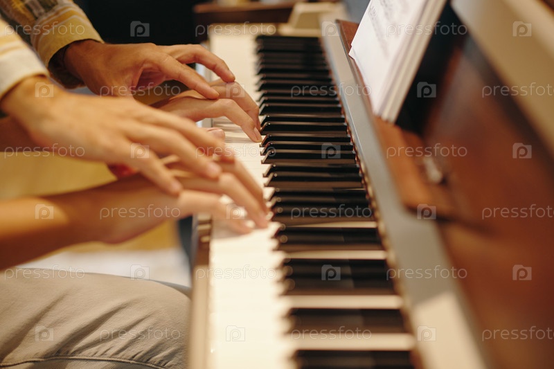 Учиться игре на фортепиано с наставником, направляющим руки студента
