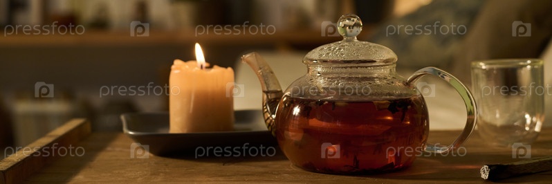 Прозрачный чайник с горячим травяным чаем