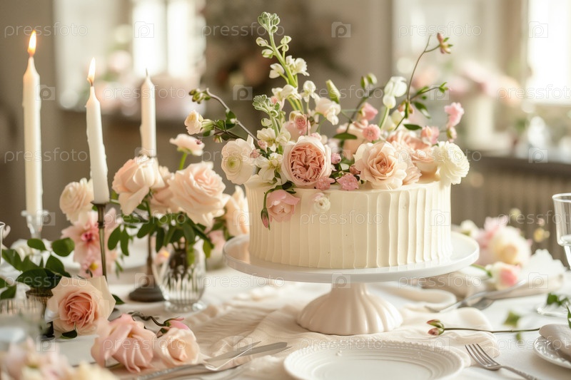 Празднование с элегантным дизайном цветочного торта