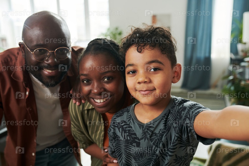 Маленький мальчик делает селфи со своими родителями