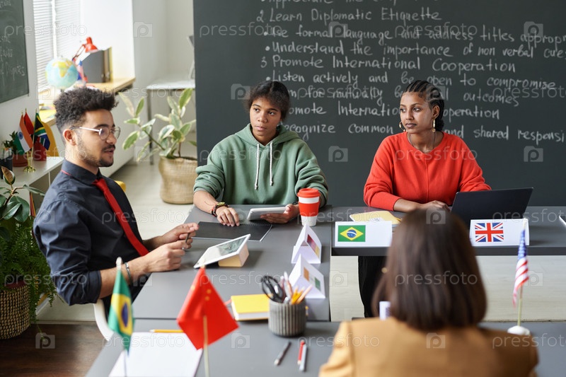 Ученики слушают учителя-мужчины в школе