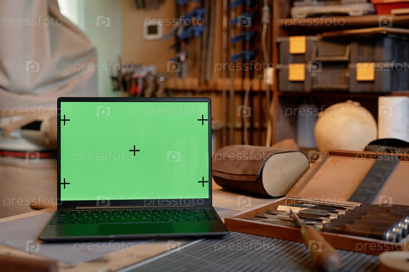 Регулирование зеленого экрана ноутбука на деревообрабатывающем столе