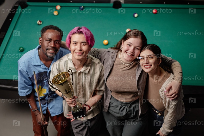 Празднуем Победу в бассейне, держим трофей и улыбаемся вместе