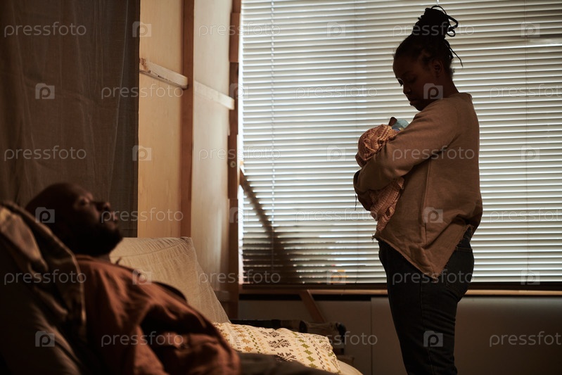 Мать кормит новорожденного ребенка у окна