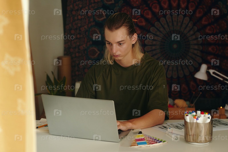 Дизайнер, работающий онлайн на ноутбуке
