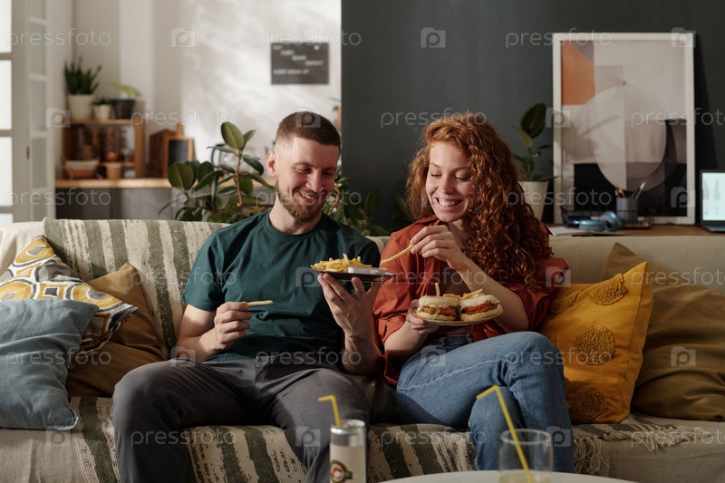 Парень делится картофелем с девушкой