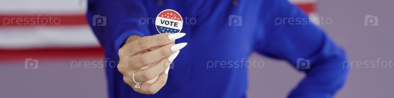 Молодая женщина, держащая патриотический пин