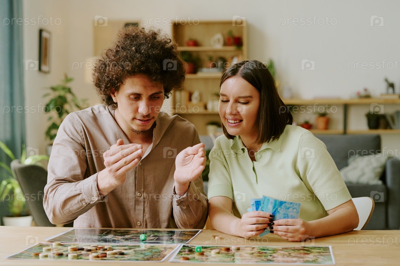 Пара играет в современную тематическую настольную игру