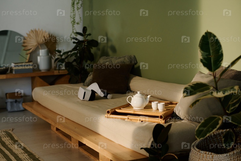 Объекты на диване в гостиной Wabi Sabi