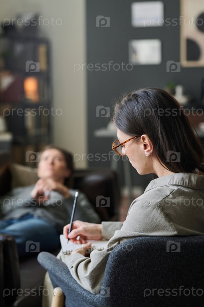 Обсуждение проблем с терапевтом на удобном диване