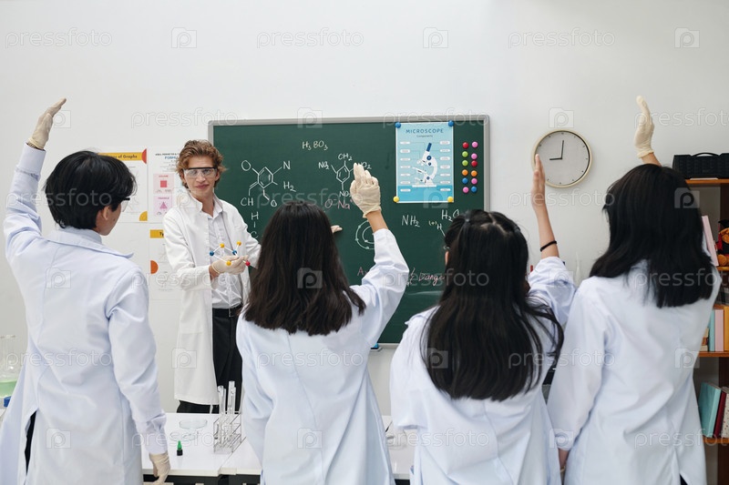 Преподавание химического класса с энтузиастическими учениками