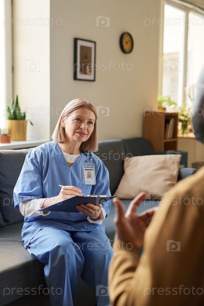 Улыбающаяся женщина-врач, держащая Клипборд