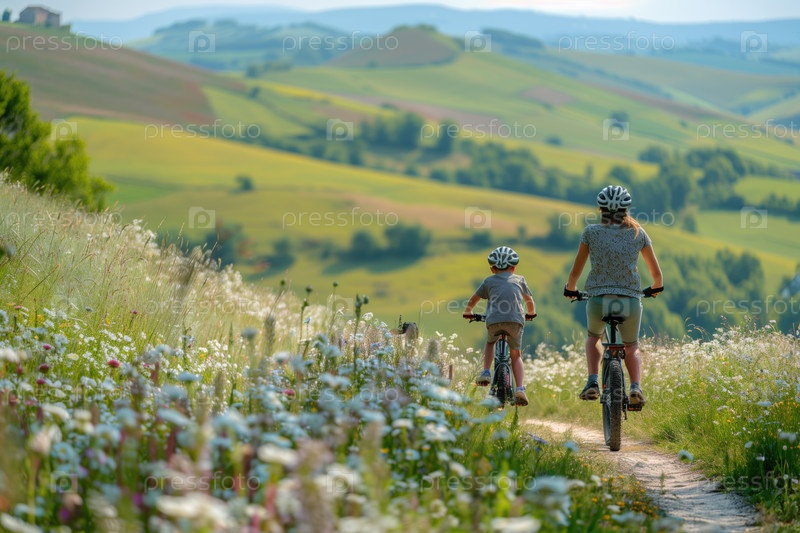 Велопрогулка по живописной сельской местности с пышными зелеными холмами