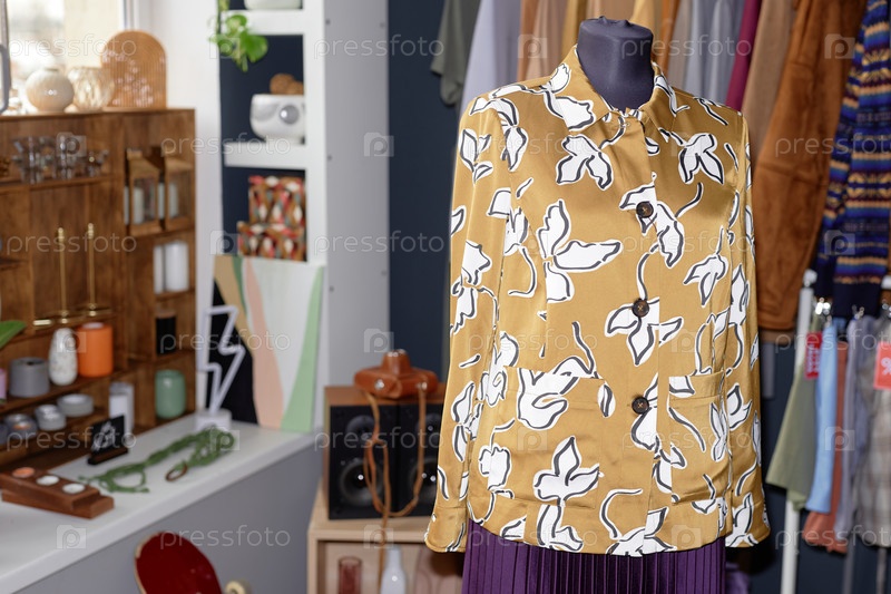 Манекен с винтажной блузкой в магазине подержанных товаров