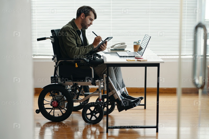 Человек с инвалидностью, работающий на планшетном компьютере