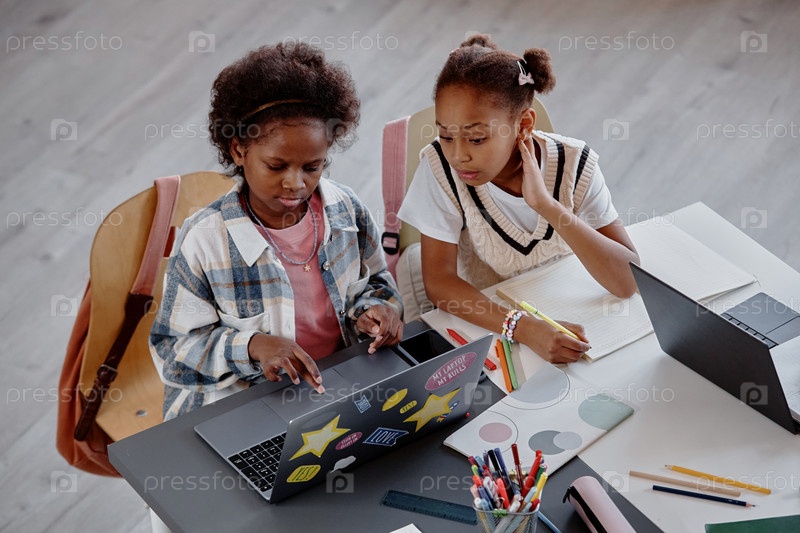 Дети учатся в группе из двух на компьютере