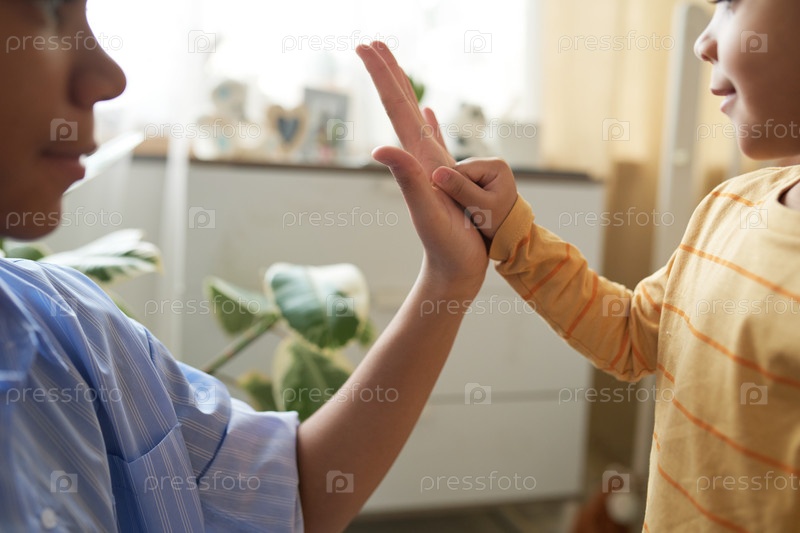 Дети High-Fiving в яркой уютной комнате