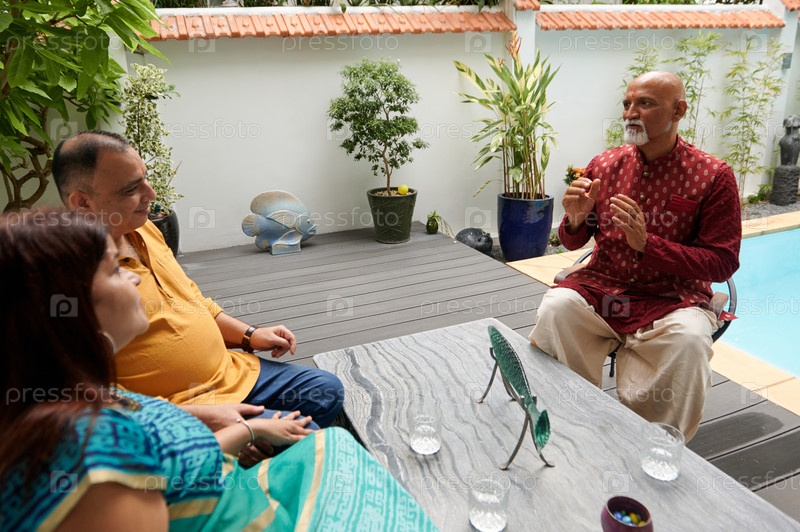 Старые друзья, сидящие на террасе