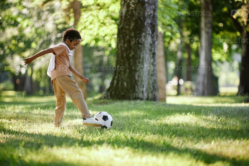Маленький мальчик наслаждается футболом