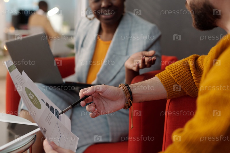 Близкий взгляд на деловую дискуссию с документами в офисе