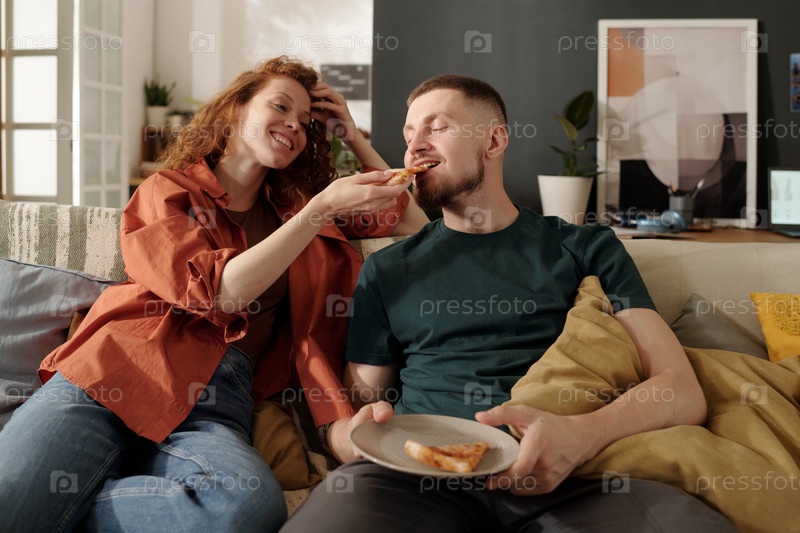 Делиться аппетитной пиццей с парнем