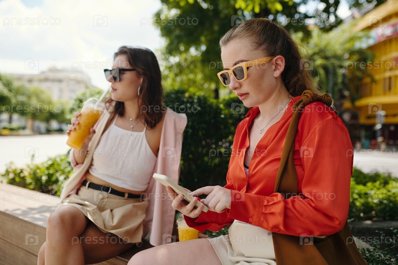 Наслаждаясь свободным временем, сидя на скамейке в парке