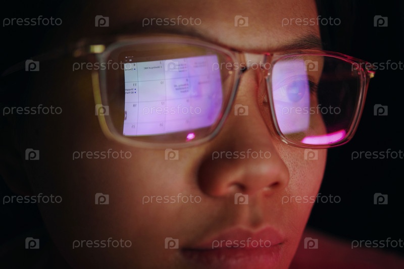 Наблюдение за отражением в очках с сосредоточенным выражением