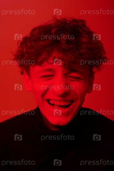 Смеющийся молодой человек в красной среде