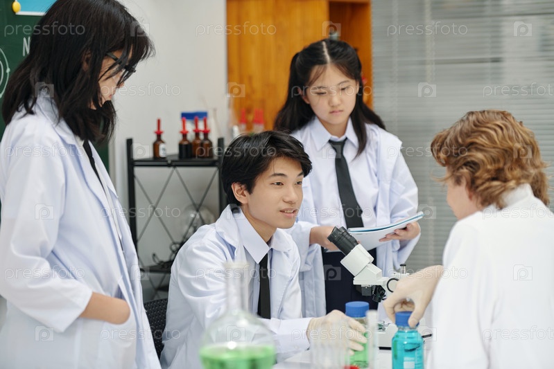 Студенты проводят научный эксперимент в лаборатории