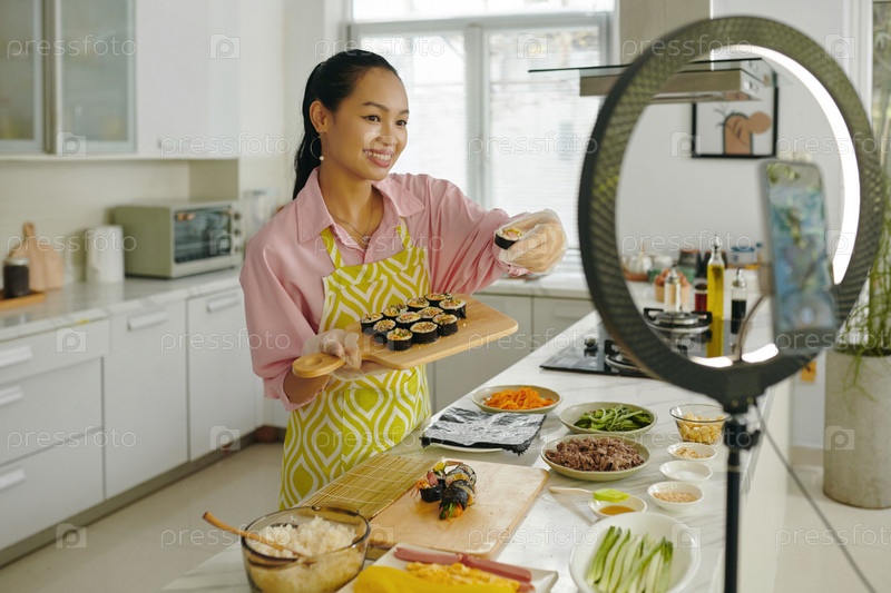 Подготовка Kimbap для ее женского блога
