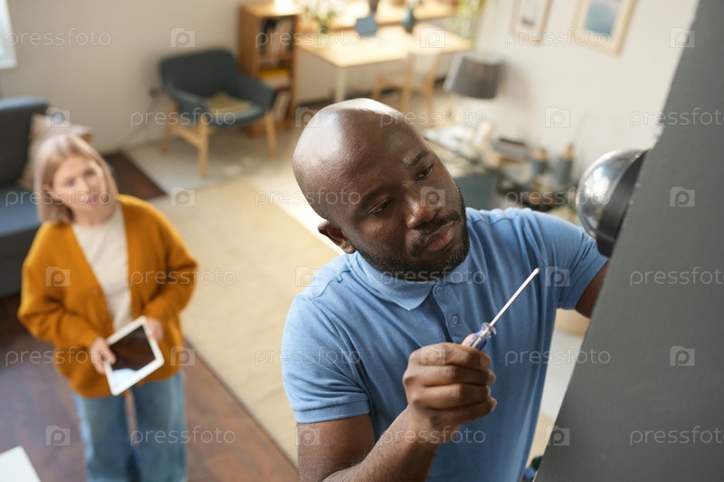 Чернокожий мужчина делает ремонт дома