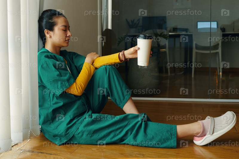 Отражение профессионала сестринского дела, сидящего у окна офиса