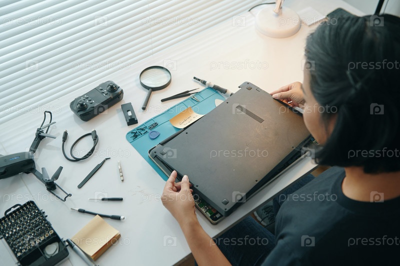 Мастер по ремонту компьютеров, работающий в сервисе