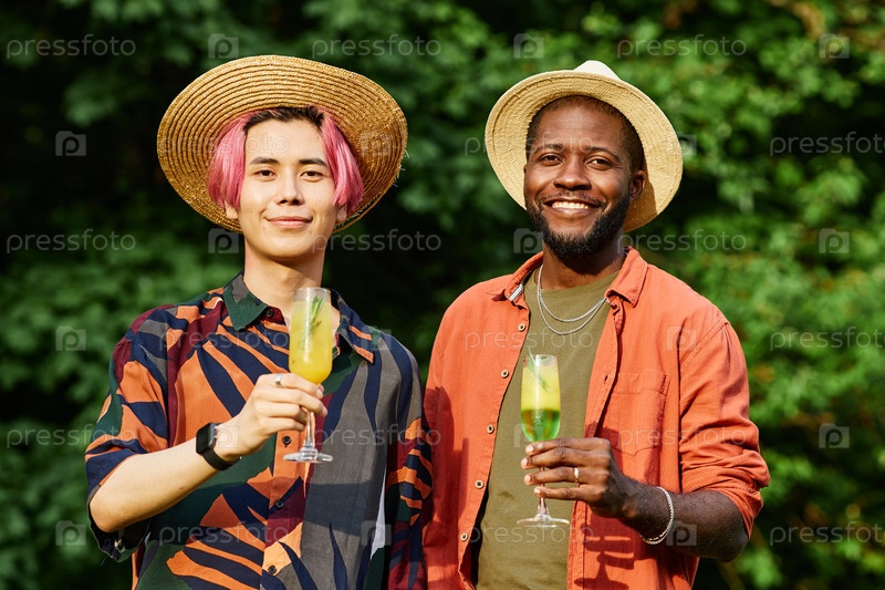 Празднуя лето на свежем воздухе, держа освежающие напитки