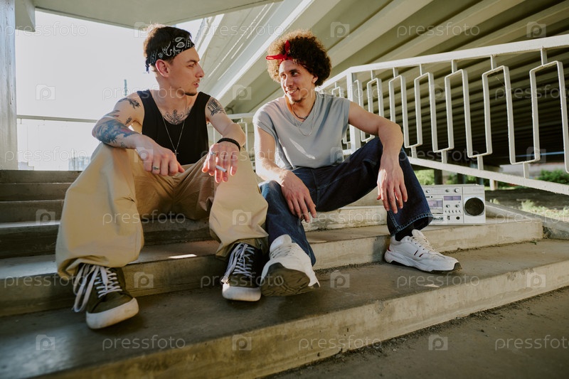 Друзья, беседующие на лестнице