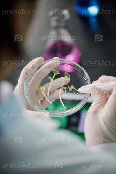 Принимаю крошечные зеленые микробы из чаши Петри