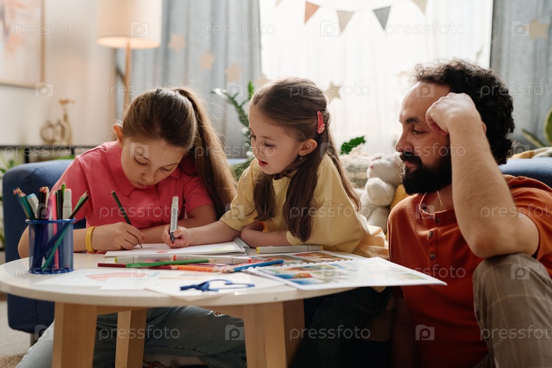 Рисование и окраска с родителем в уютной гостиной