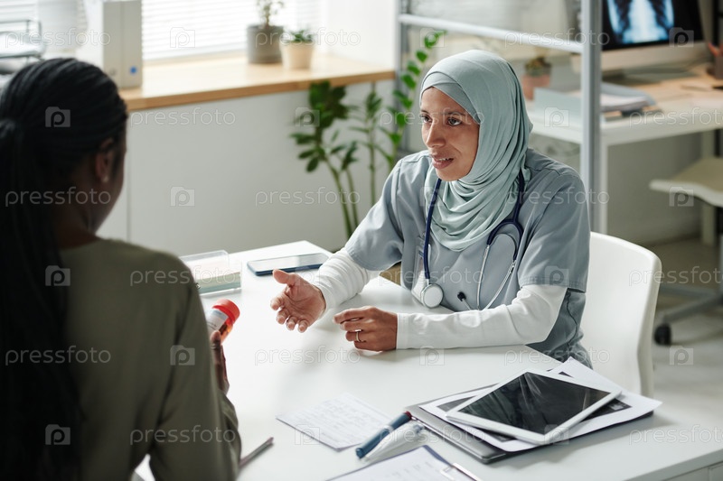 Консультация пациента с бутылкой таблеток